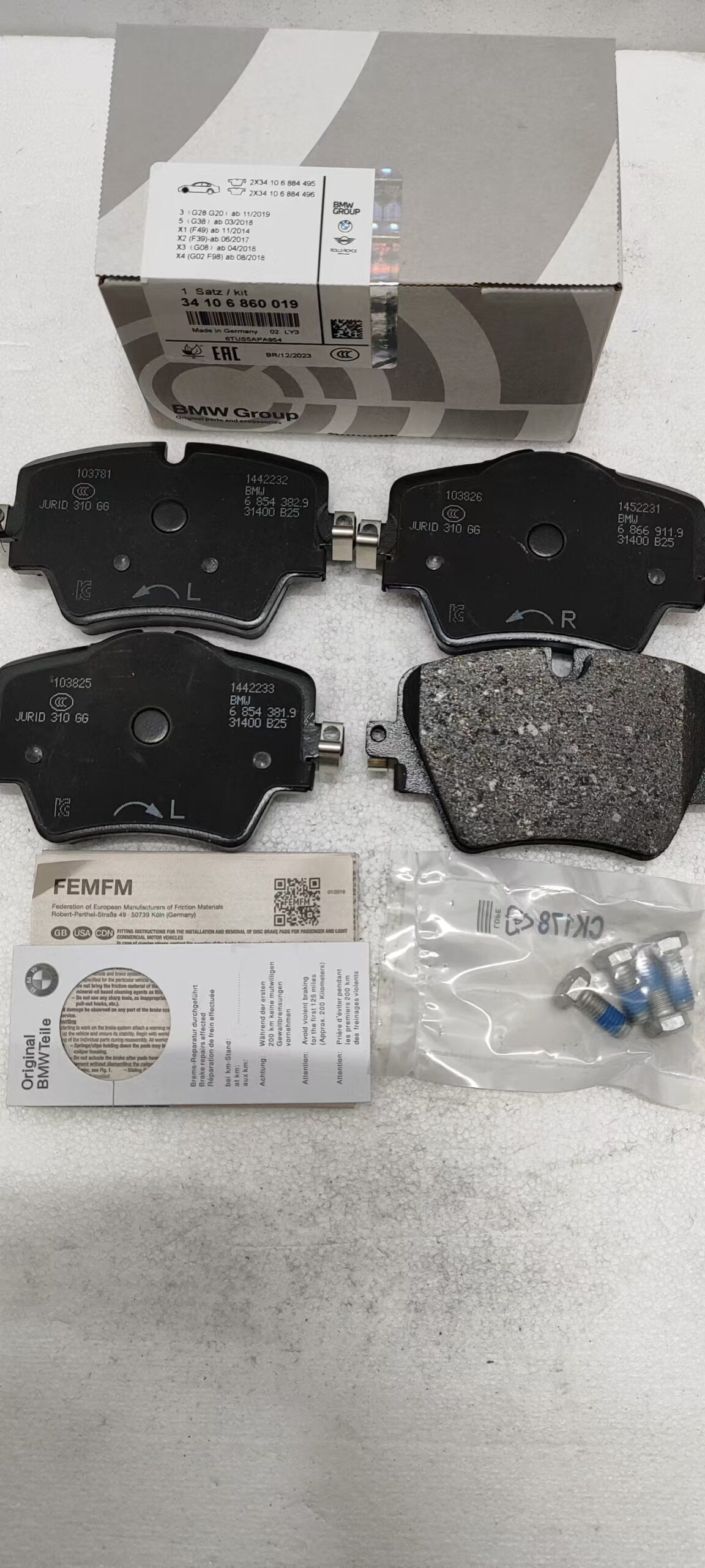 34106860019 BMW F45 F46 F48 Front Brake Pad Set 34106884492 34106884497 34106882418 34116890553 341068762245 34106888777 34106898307