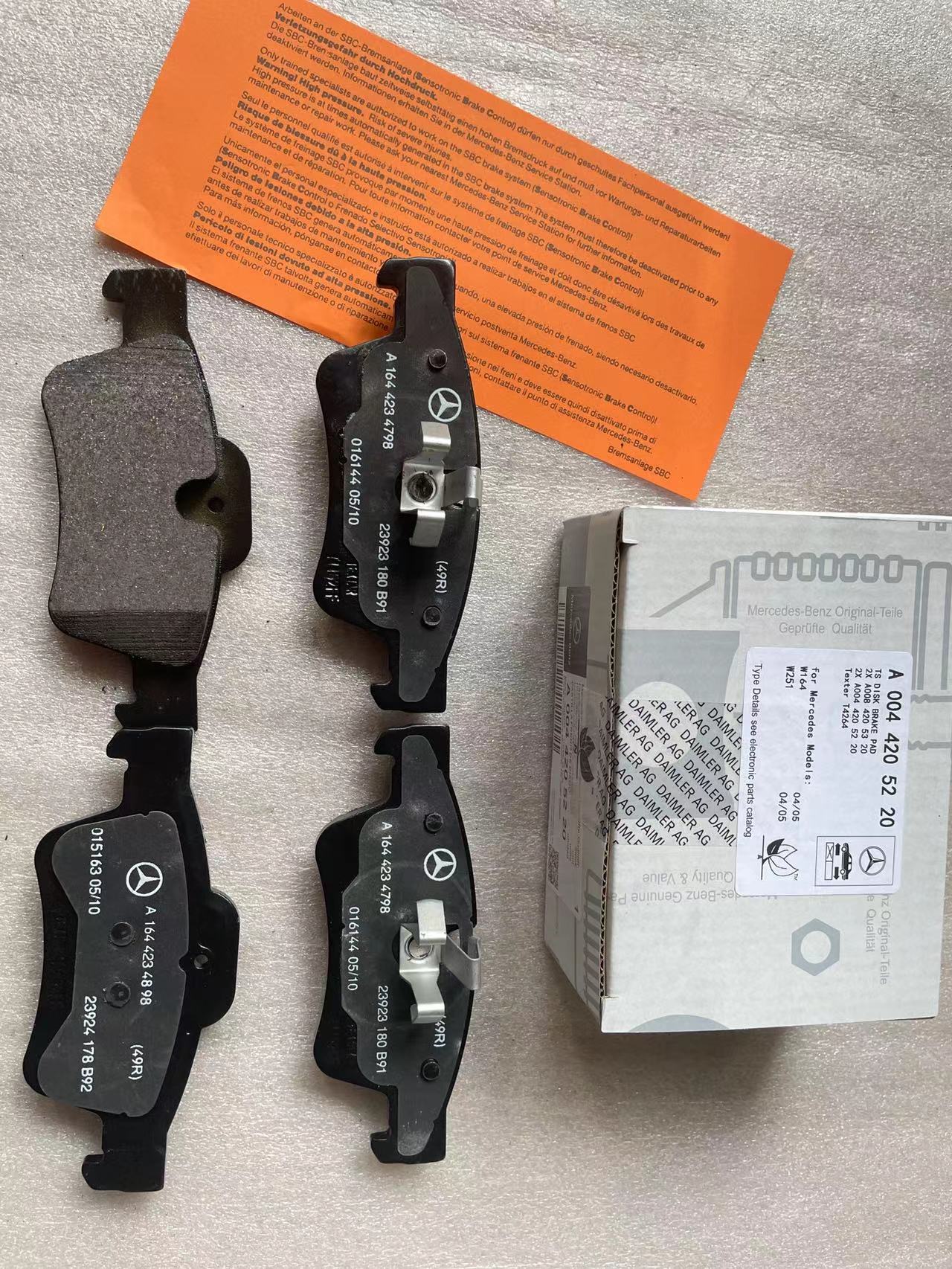 A0044205220 A1644201920 A0084205320 A1644201520 Mercedes-Benz W164 X164 W251 Rear Wheel Brake Pad Set 0044205220 1644201920 0084205320 1644201520