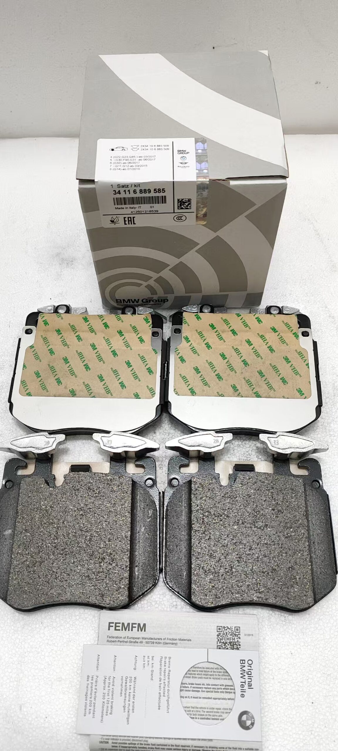 34116889585 BMW G30 G31 G11 Front Brake Pad Set 34116874432 34108064560 34108064561 34116874431 34106883510